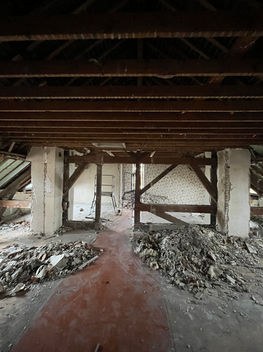 Démarrage de la phase 1, phase de démolition et curage du projet de transformation d'une ancienne maison de retraite en 23 logements sociaux pour le compte de Val Touraine Habitat. La partie RDC qui connectait les deux bâtiments est supprimée. A l'intérieur, on y découvre de vieilles poutres et des murs de tuffeau qui avaient été doublés.
